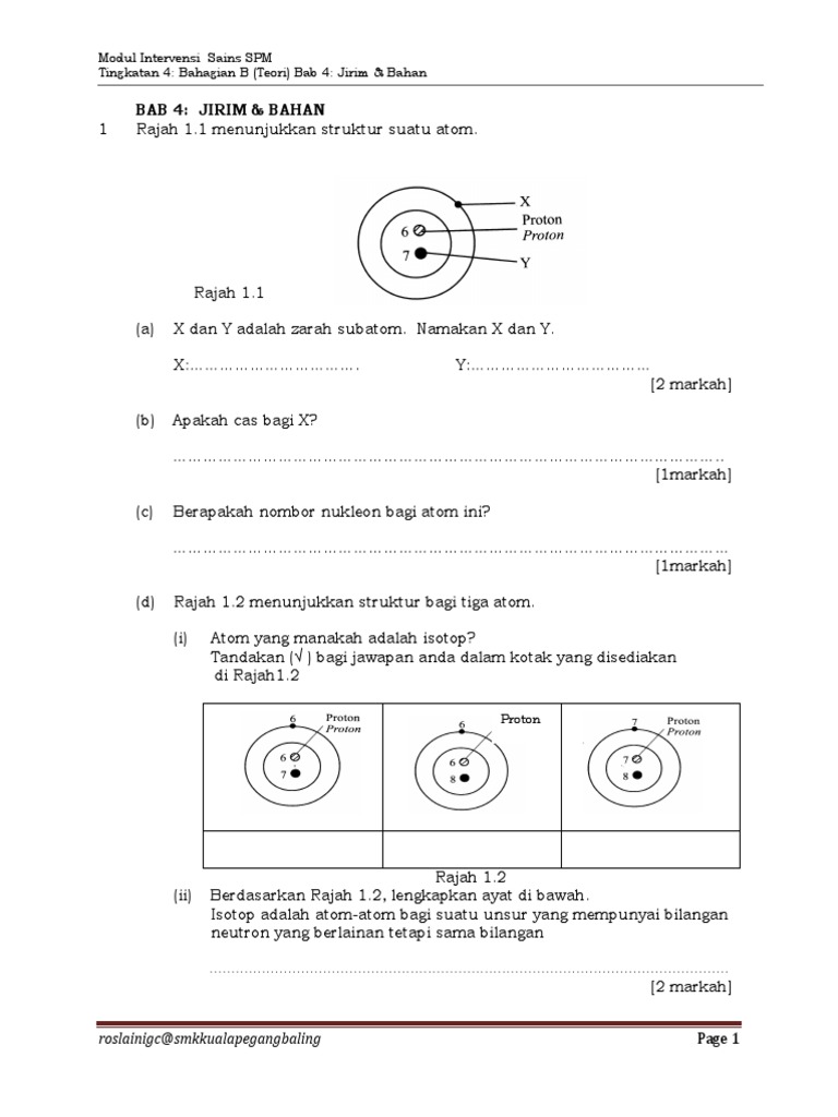 Soalan Kimia Bab 2 Form 4 Struktur Atom Pdf